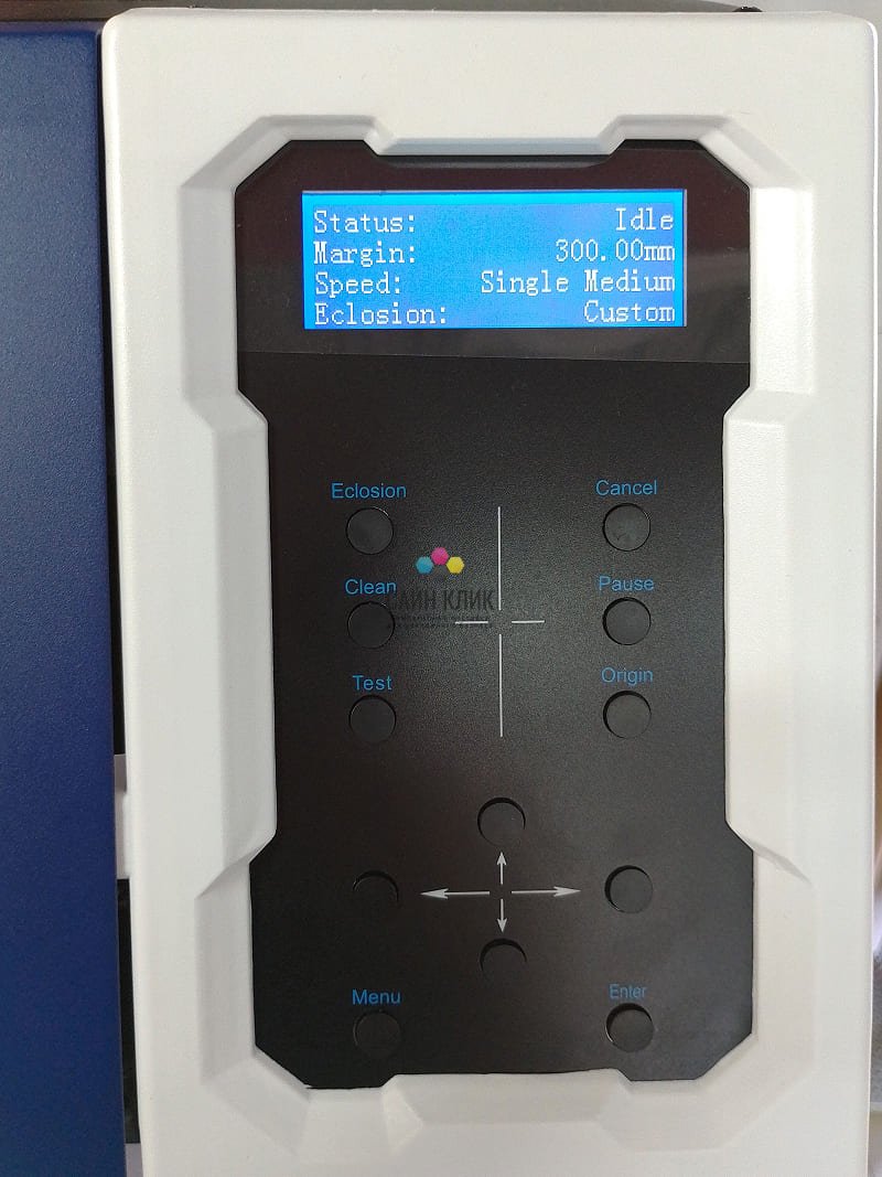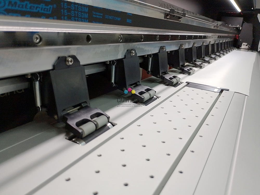 Качество печати обеспечивается печатающей головкой Epson i3200-E1 с разрешением 2400 dpi и технологией переменного размера капли: