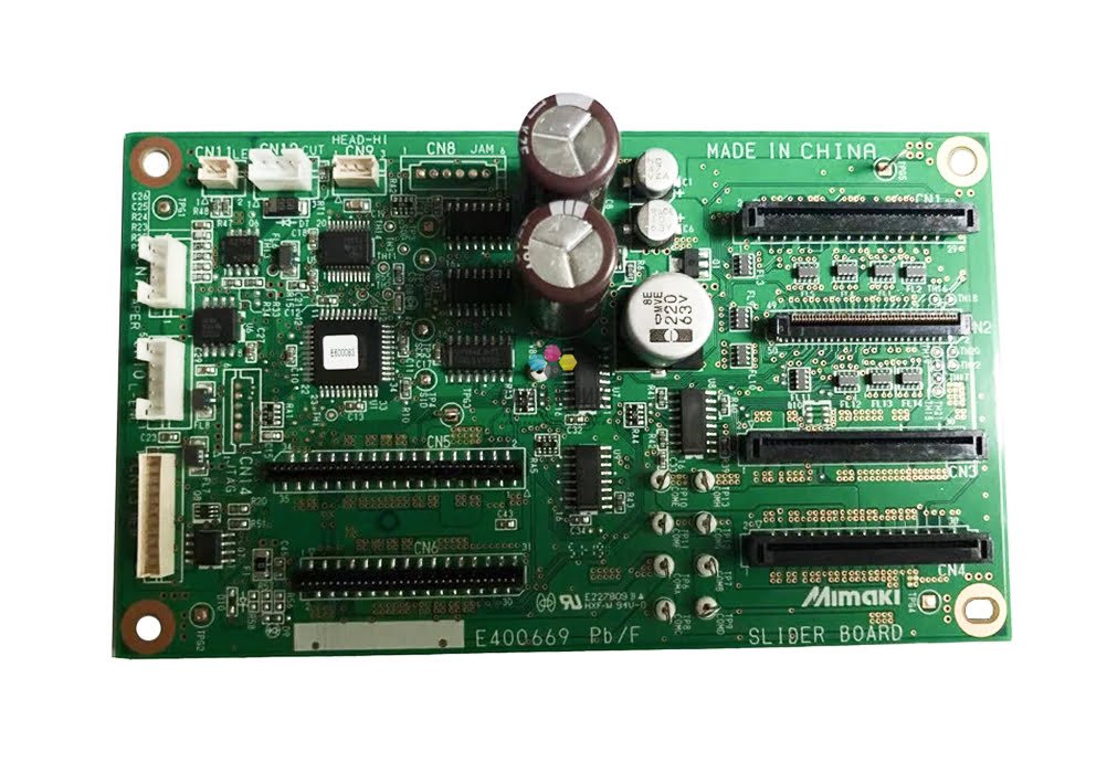 Плата слайдера для Mimaki CJV30 — это высокотехнологичный компонент, отвечающий за точное перемещение каретки принтера. Устройство обеспечивает плавное движение печатающей головки, что напрямую влияет на качество и точность нанесения изображения.
