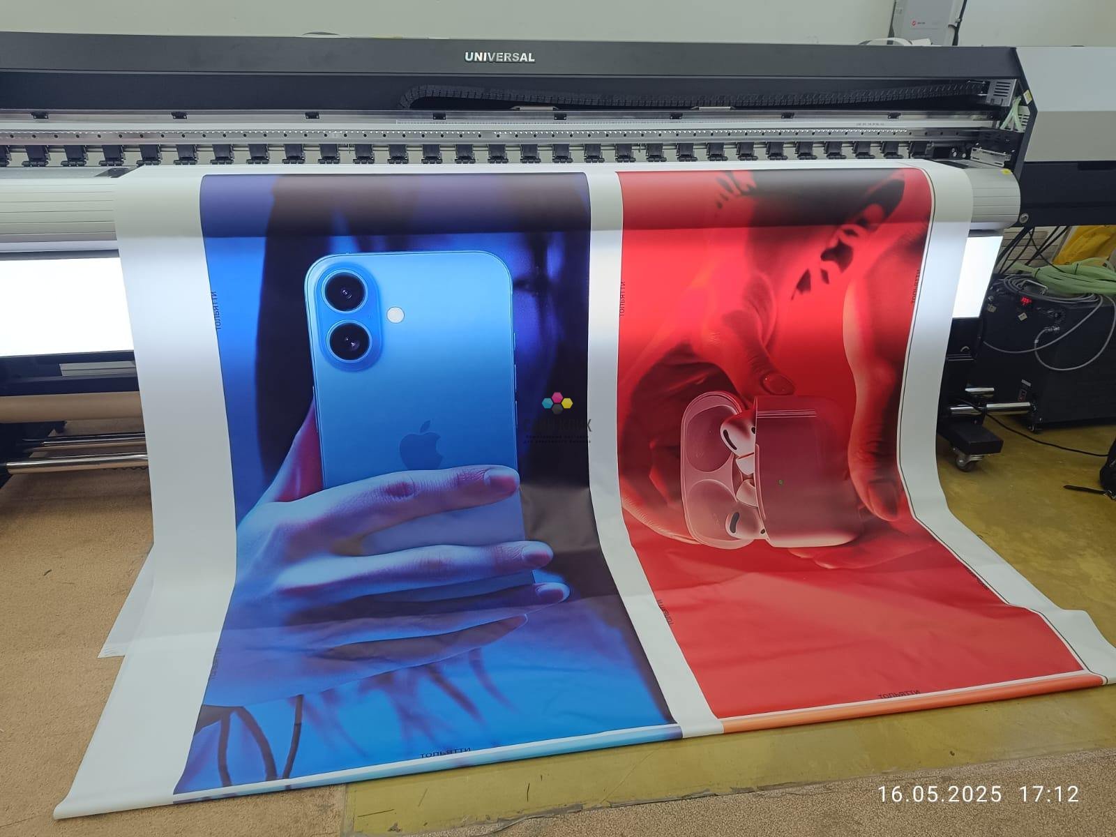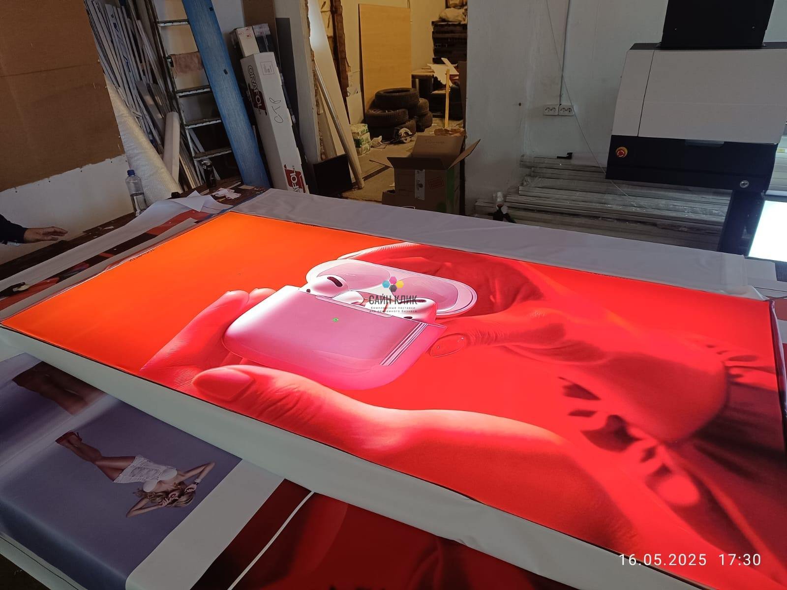 - Универсальность цветов: работа с белыми чернилами расширяет спектр заказов (печать на прозрачной пленке, темном баннере).